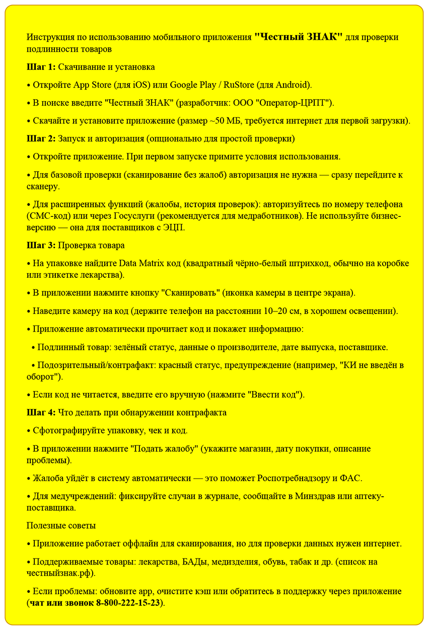 Инструкция по использованию приложения "Честный ЗНАК"